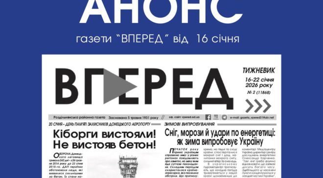 Анонс газети «ВПЕРЕД» за 16 січня