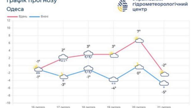 Упродовж найближчих чотирьох днів на Одещині очікують нестійку погоду. 18 лютого та вночі 19 лютого ...