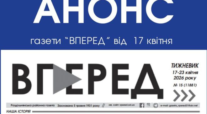 Анонс газети “Вперед” за 17 квітня 2026 року