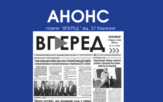 Анонс газети “Вперед” за 27 березня